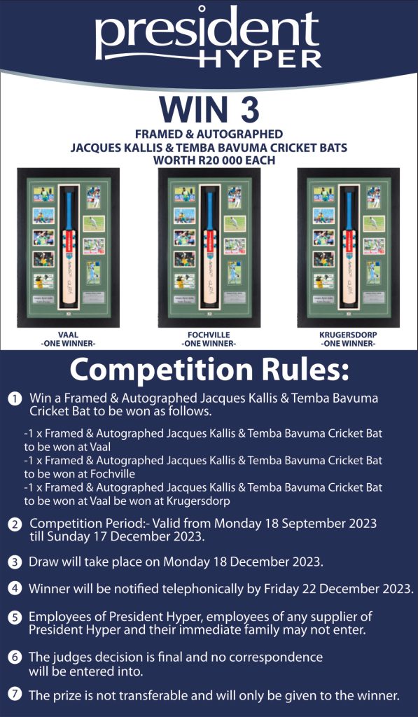 Win 3 Framed & Autographed Jacques Kallis & Themba Bavuma Cricket Bats Competition